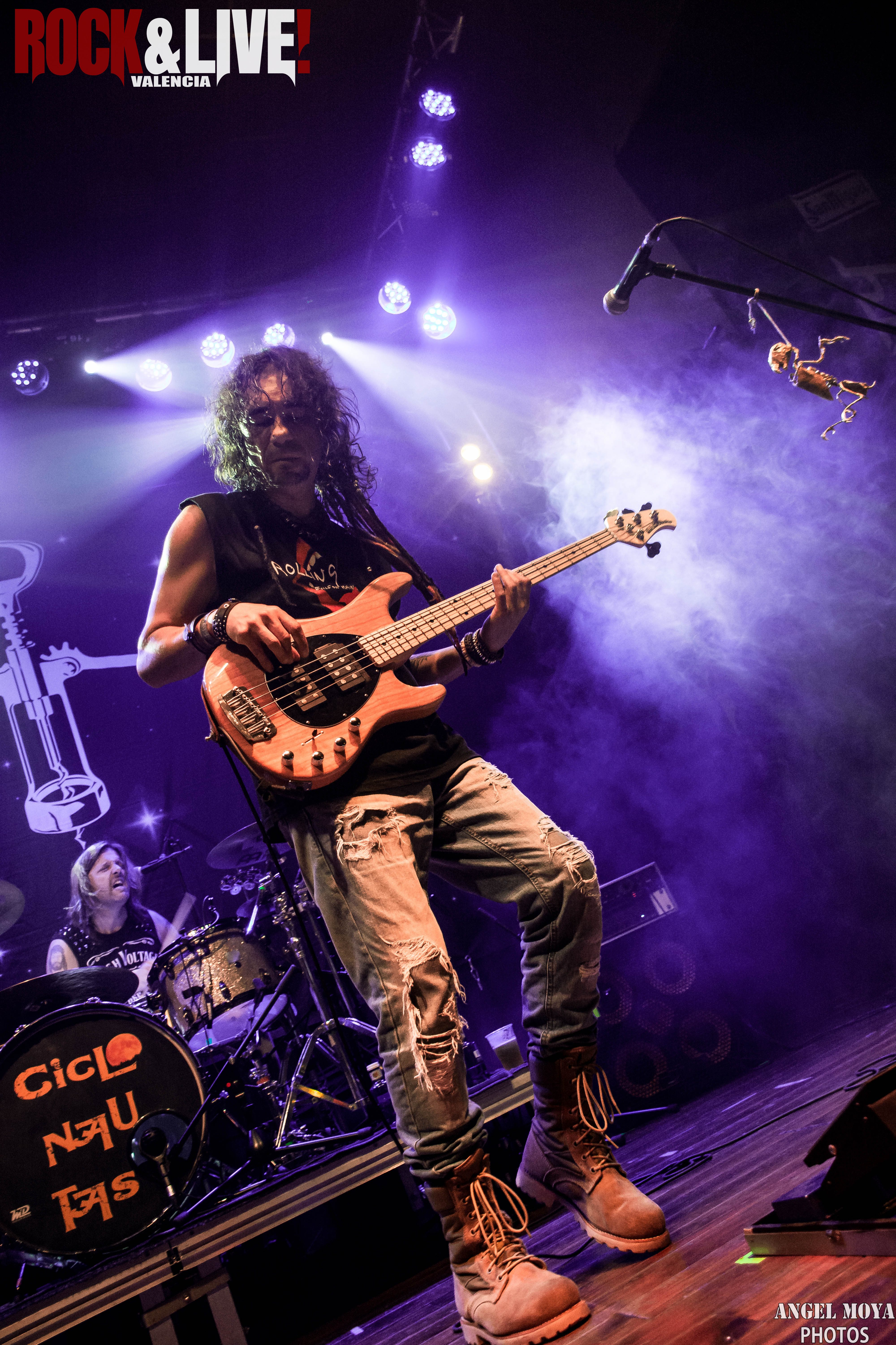 Salen a escena Ciclonautas, suenan los primeros acordes del trío formado por Mai Medina a la guitarra y voz, Txo Pintor al bajo y Alen Ayerdi a las baquetas. El público expectante ante el ritmo pegadizo y vacilón de »Bienvenidos los muertos». Que mejor manera de presentar un disco que abrir el concierto con el single que ademas lleva el titulo de éste.