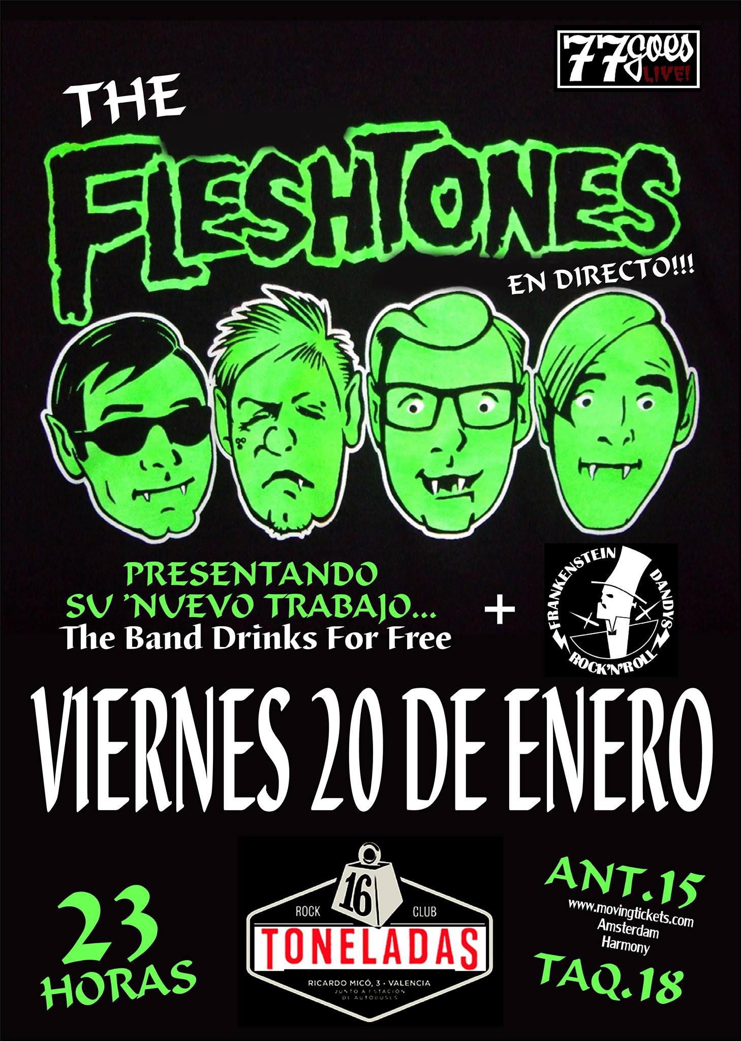 Agradecer a «77goeslive»  y a la  sala 16Toneladas por el siempre trato exquisito para con nosotros y  por la programación tan sugerente. Hay otros mundos dentro del rocanrol, la sala llena con muchos seguidores del grupo y pocas caras conocidas de los habituales del rock en Valencia. Mucho talento!!