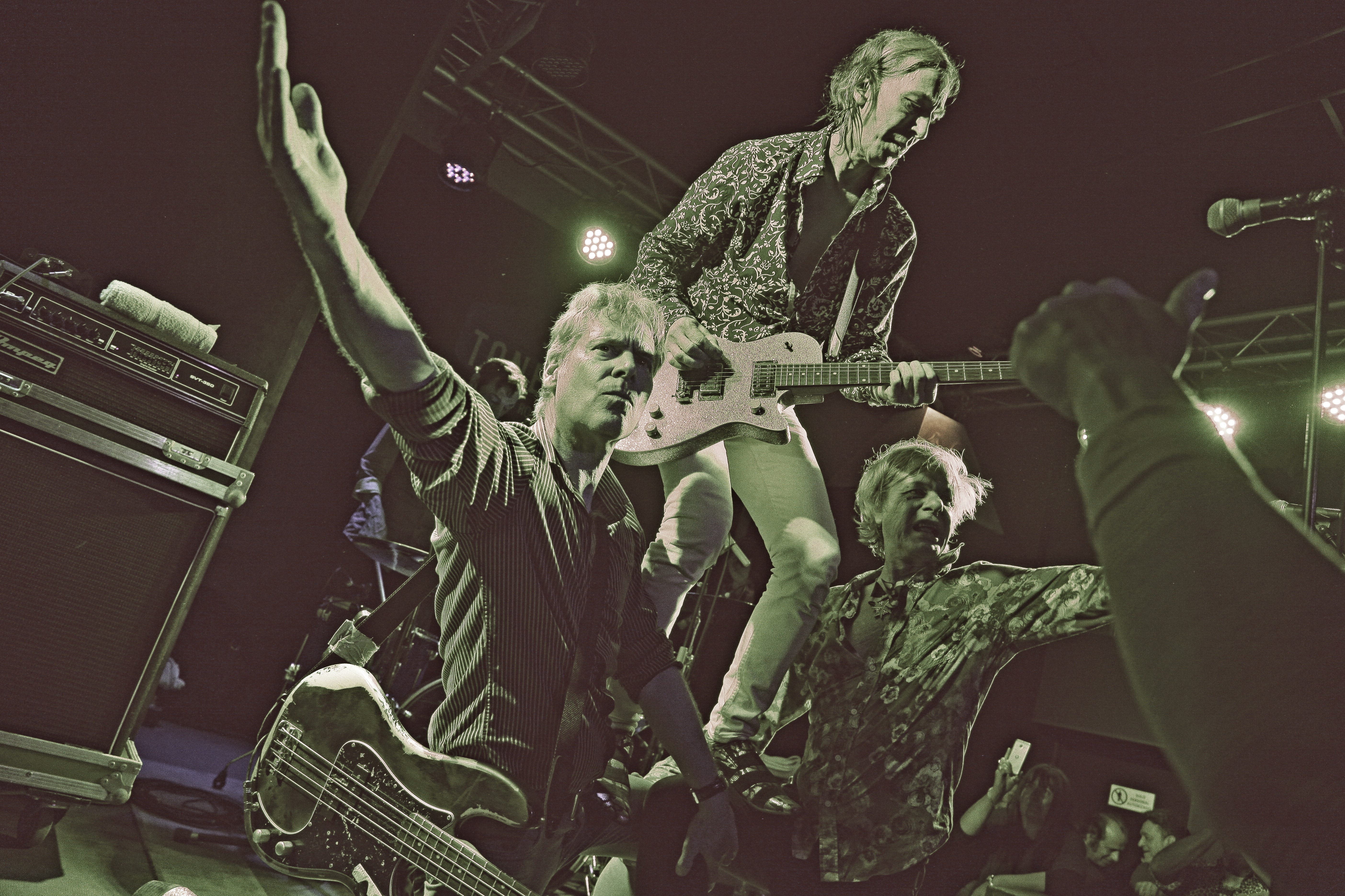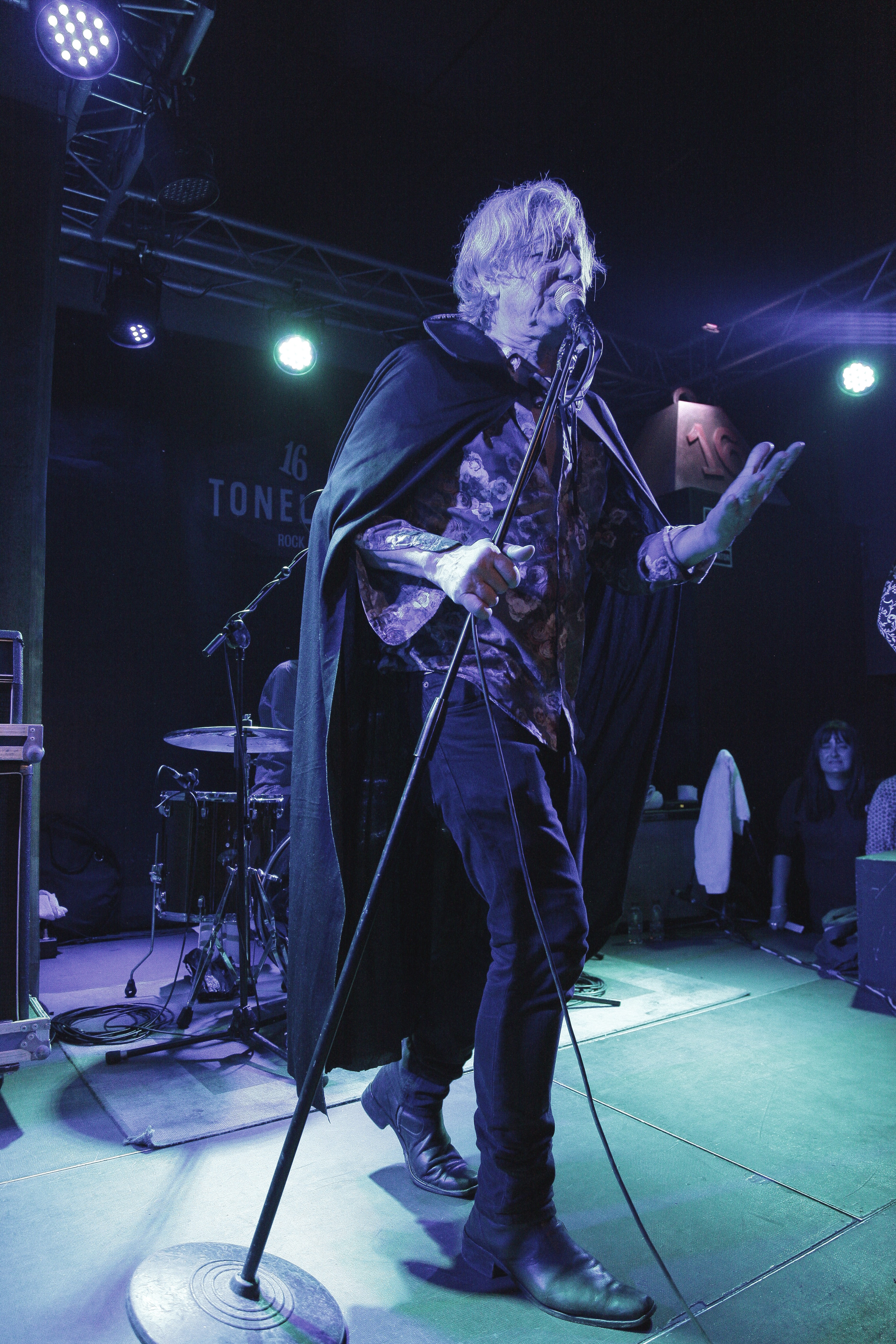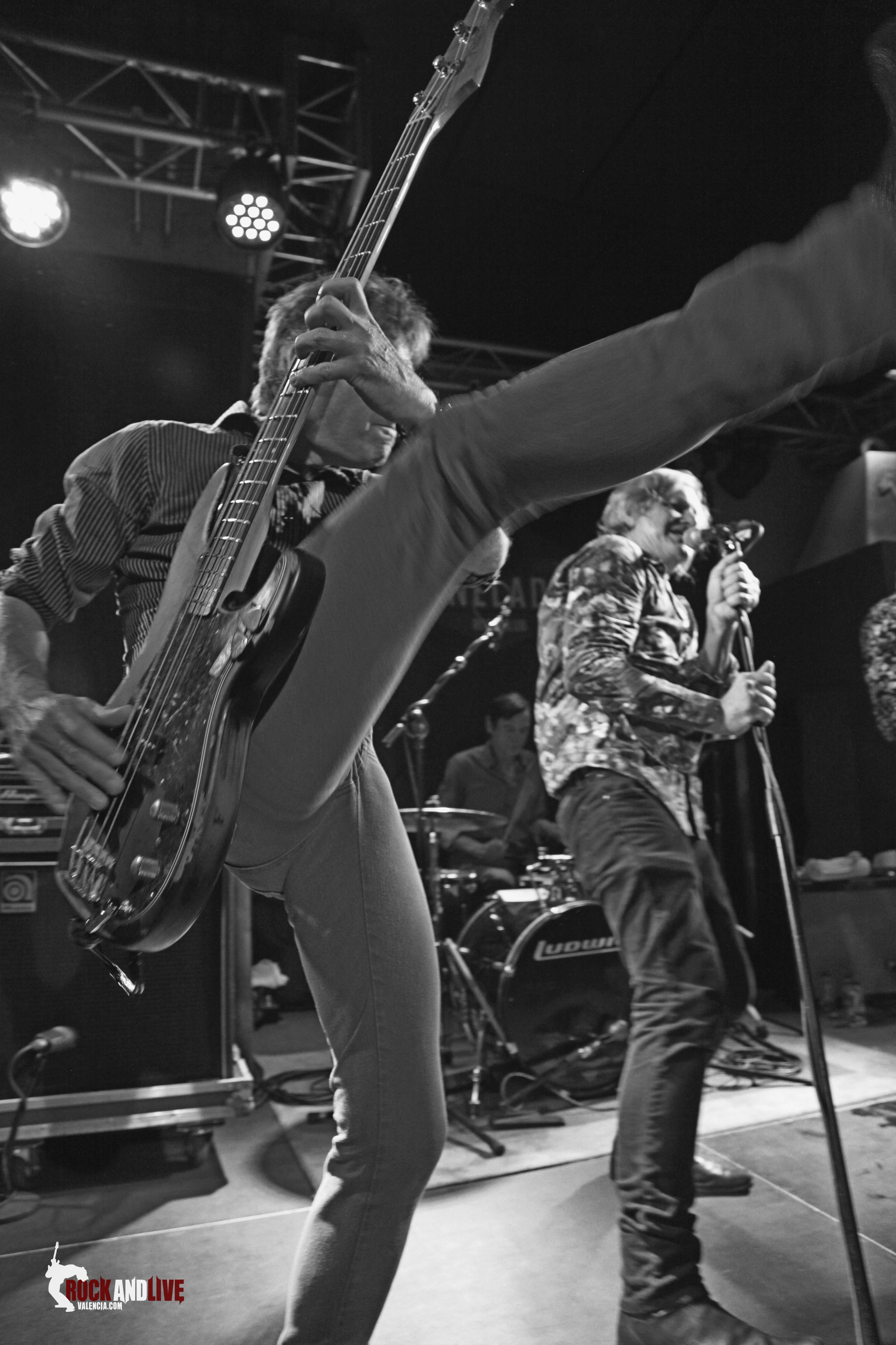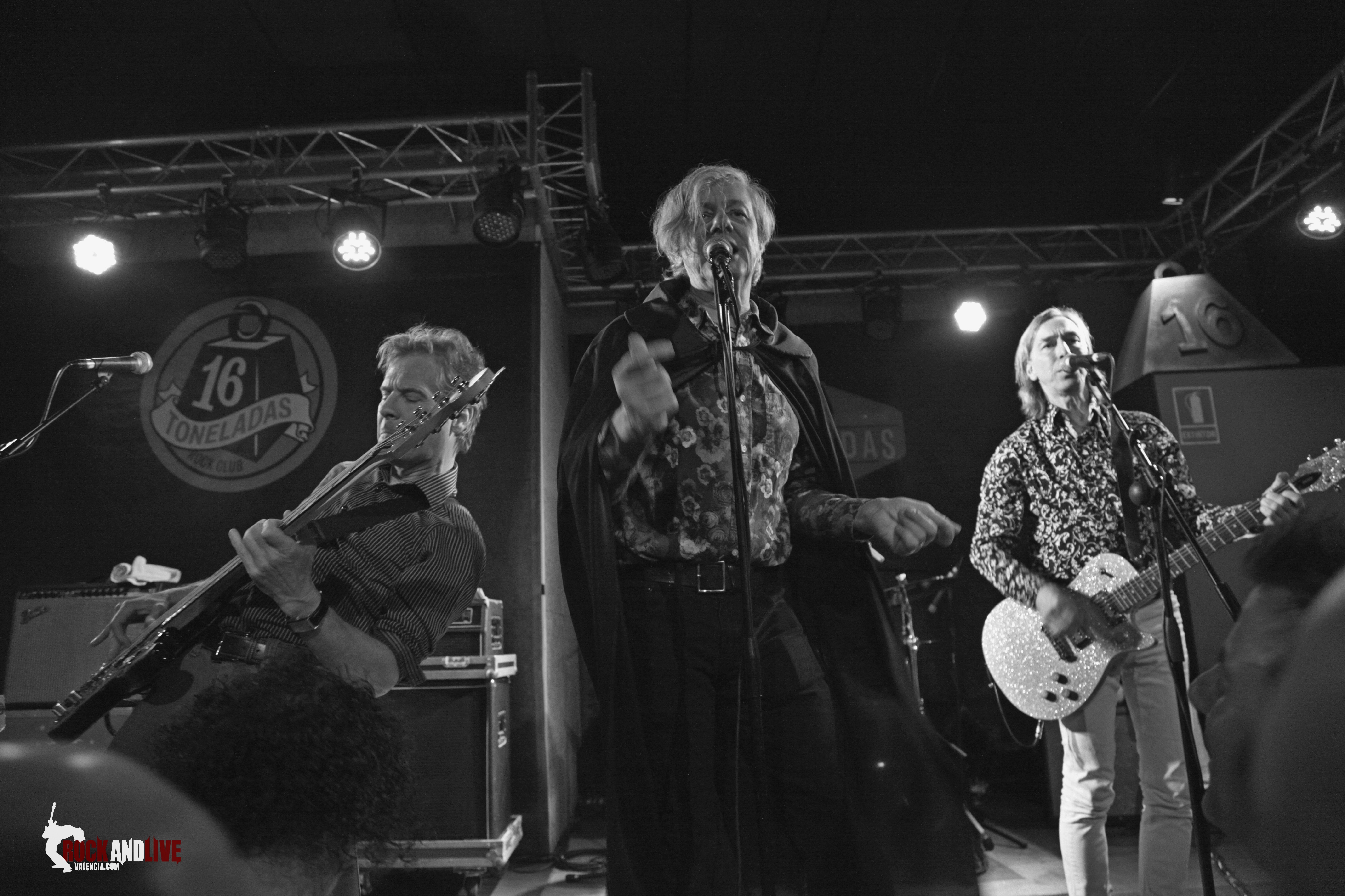 La sala vibra cuando con una intro distorsionada por la guitarra entran en escena cuatro tipos de sesenta. El cantante porta una capa a lo tuno o lo vampírico. La electricidad esta en el cuerpo de estos sesentones y lo digo con cariño, camisas y sonido undergrond, teclado tocado lo justo, al igual que la armónica y la voz la comparten a tres .La pócima de la eterna juventud los mantiene en forma y es que hay mucho talento, como decían ellos. Canción tras canción nos meten al publico en un concierto divertidísimo y nos hacen girar y girar dando vueltas, haciéndonos cantar a coro los estribillos. Bajan del escenario al público, saltan…  en definitiva, se divierten y nos transmiten ganas de pasarlo bien.