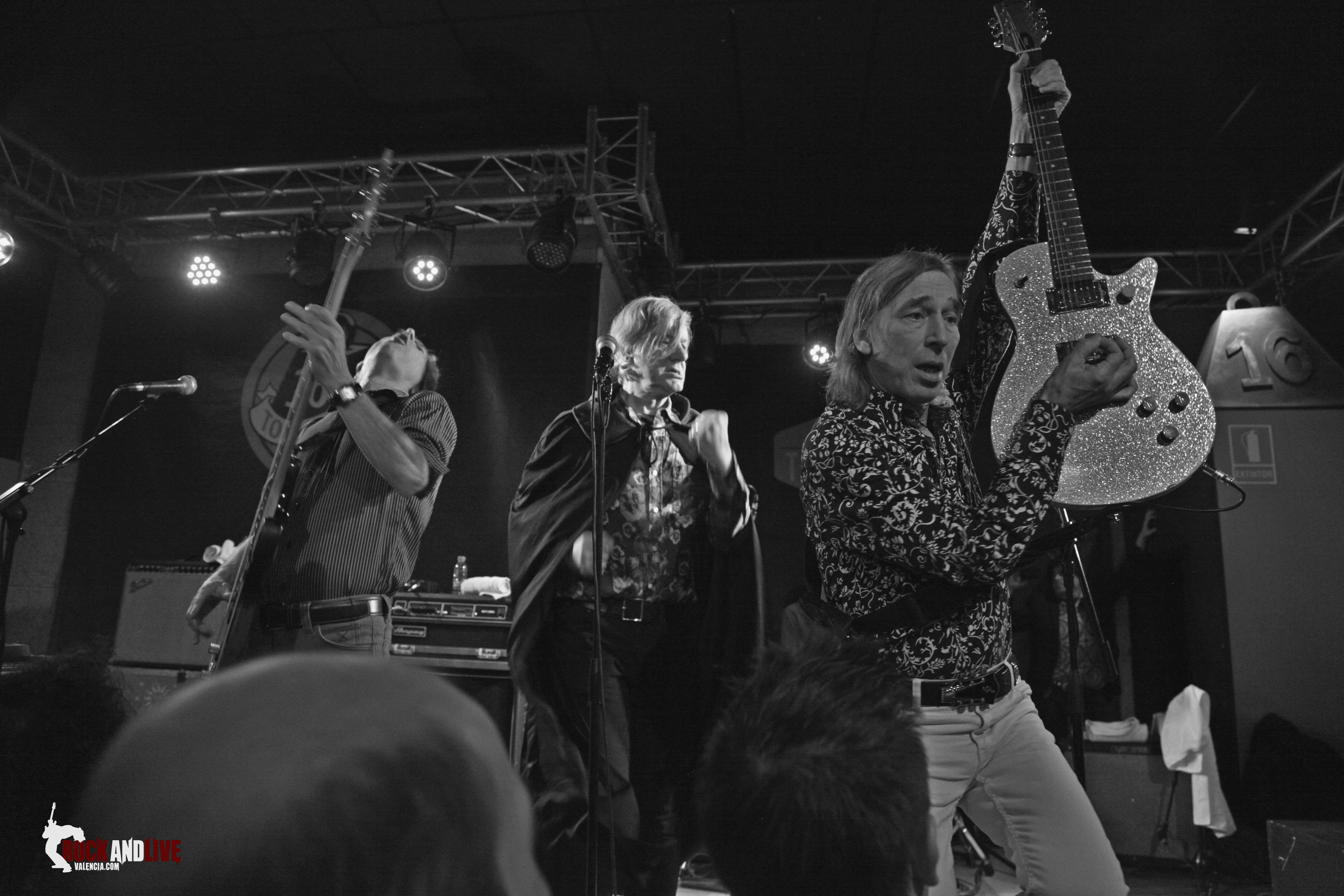Miro su Tour en España y solo se me ocurre pensar… ¡currantes del rock!. En dieciocho días. diecisiete conciertos seguidos. con la excepción de un día de descanso. Cifras que se añaden a una numerosa lista que los avalan como míticos: diecinueve discos, no se cuantos singles (varios de ellos en castellano). Pese a todo llegó la cita y tras ocho horas y media de viaje desde Zaragoza acampan en Valencia. La lluvia y la nieve no los ha frenado, aparentemente y tal como estaba el tiempo creía que la sala 16T no se llenaría, me equivoqué ¡llenazo absoluto!. Sigo pensando que hay dos públicos diferenciados en Valencia, el de los tributos y el público que sigue siendo fiel y exigente y busca una programación original, como la que afortunadamente tenemos en esta ciudad.
