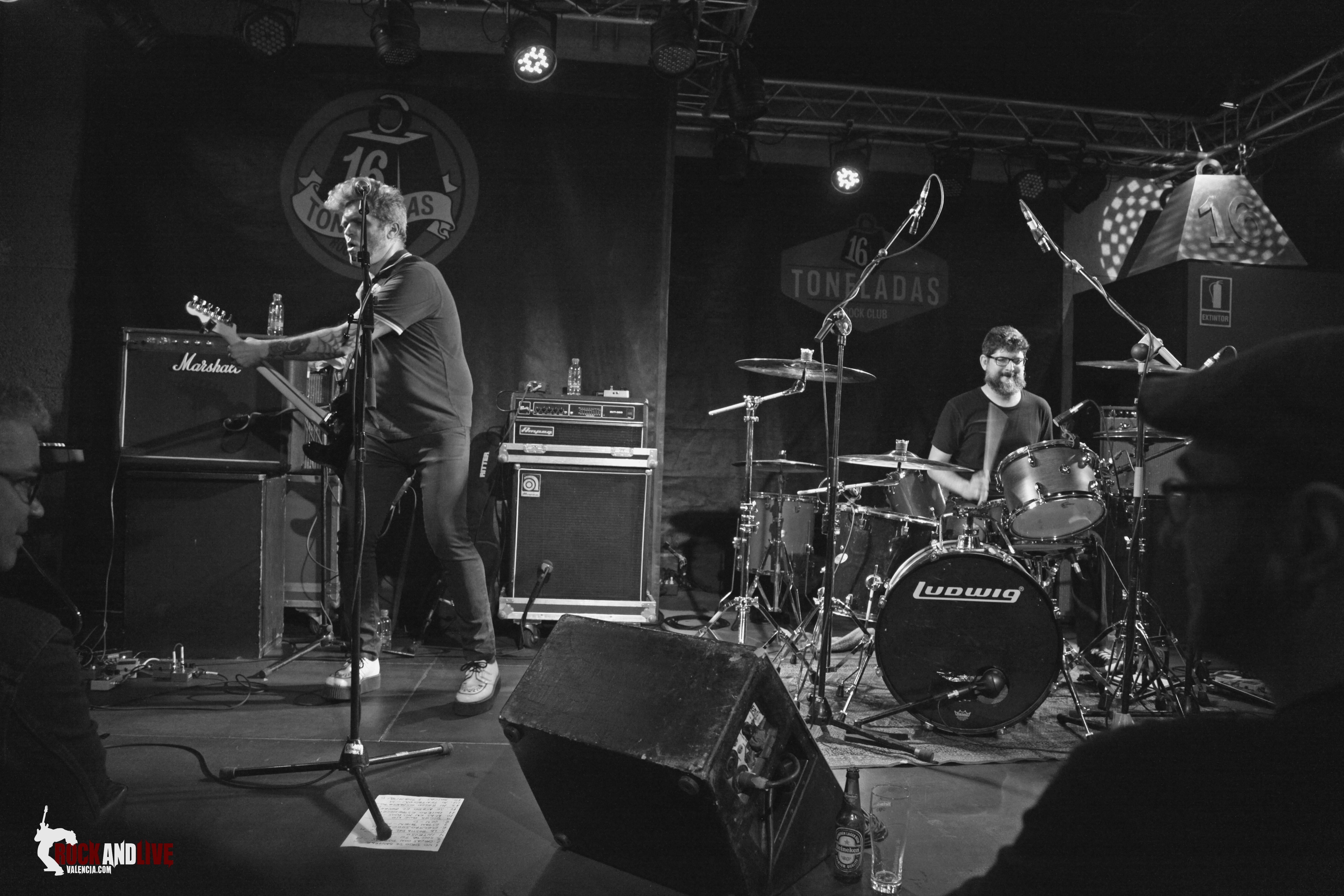 Se apagan las luces y comienza a sonar la banda invitada, Frankenstein Dandy. Los de Campanar sorprenden con su formación, dúo con guitarra y batería, quince temas enlazados y a un ritmo de vértigo. No dispongo de mucha información pero he decidido seguirles. Concierto brillante, me encanta la batería cuando toma protagonismo, entre el garaje y el punk .